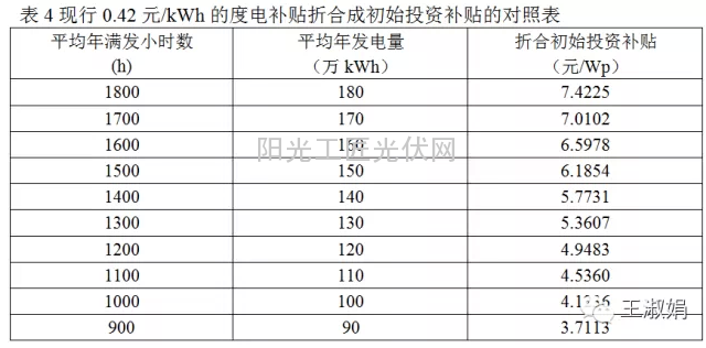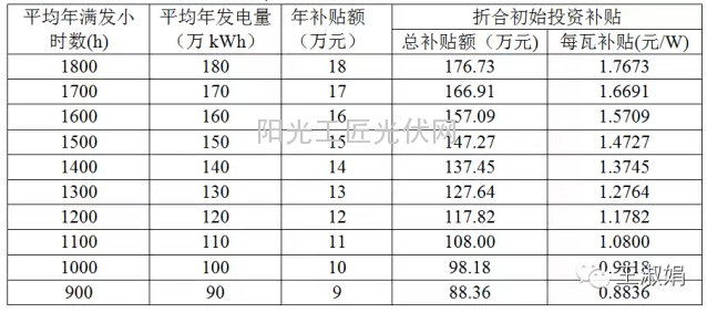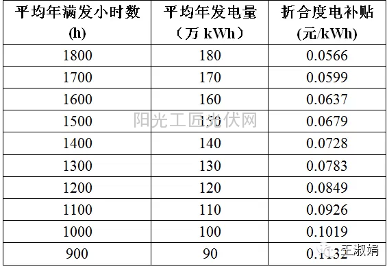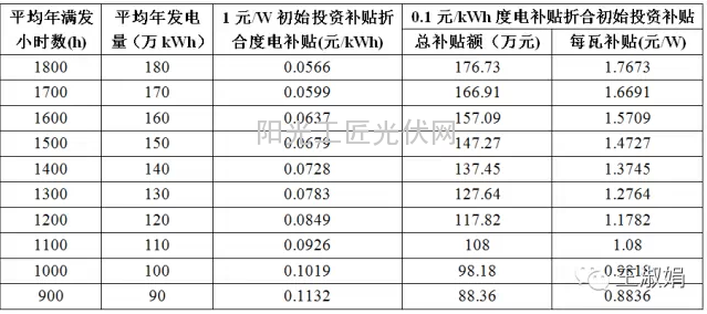 不同发电量情况下,要想获得相同的补贴,折算成度电补贴如下表。