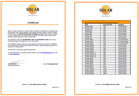 索比光伏网讯:国内领先逆变器制造商古瑞瓦特新能源近日宣布,在完成了技术、资金、生产线及劳动条件的风险评估后,Growatt逆变器满足Solar Insurance and Finance(Solarif)的所有要求,并获得其太阳能保险和金融认证。