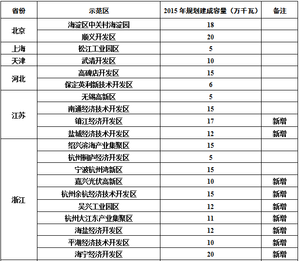 一、在国家能源局已公布的第一批18个分布式光伏发电应用示范区外,增加嘉兴光伏高新区等12个园区,共30个国家首批基础设施等领域鼓励社会投资分布式光伏发电应用示范区。具体名单及建设内容见附件1。