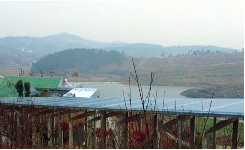 襄阳尹集桃花岭生态园积极响应国家号召,引进低碳环保的光伏发电新能源,利用生态园内农家乐屋顶、农业大棚、观光走廊等建设分布式光伏发电项目,同时租用废弃土地、荒山、荒坡等未利用土地,集约建设分布式光伏电站。