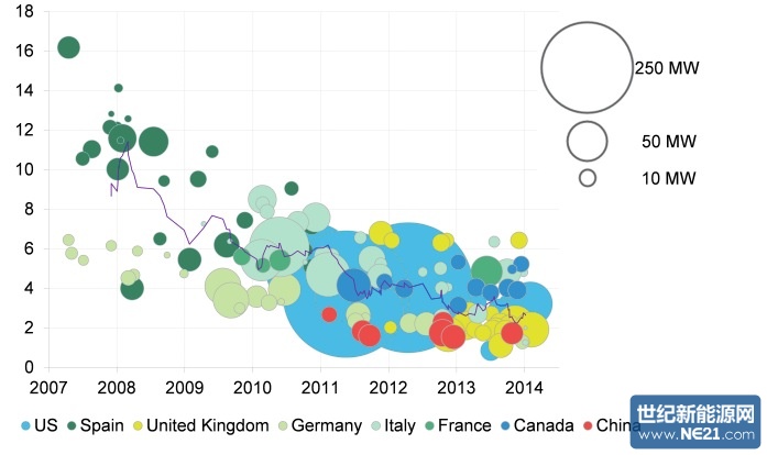 来源:彭博新能源财报告 气泡大小代表项目的兆瓦规模