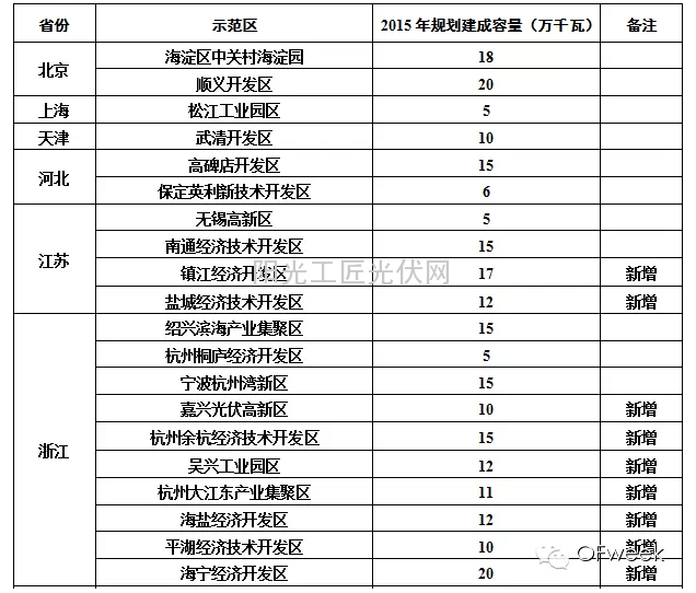 12月24日,国家能源局正式发三文推动光伏业发展。通知要求做好2014年光伏发电项目接网工作、推进分布式光伏发电应用示范区建设、做好太阳能发展“十三五”规划编制工作。在国家能源局《关于推进分布式光伏发电应用示范区建设的通知》中,提到了在已公布的第一批18个分布式光伏发电应用示范区的基础上,新增12个分布式光伏发电示范区(江苏2个、浙江7个、安徽1个)的内容,长三角区域分布式光伏发电示范区达到17个,列全国之首。在公布的30个分布式光伏规模化应用示范区名单中,我们能看到,2015年分布式光伏示范园的装机容量高达3.35GW,几乎是2014年前三季度装机总量。
