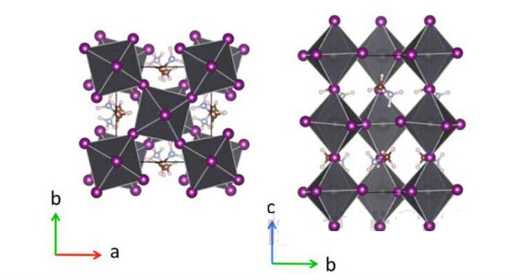 目前,特别研究小组正在探索卤化金属钙钛矿型太阳能电池的代表——甲基氨基碘化铅(CH3NH3PbI3,图1)等太阳能电池的制造方法。小组负责人白井康裕介绍说:“我们在考虑离子性晶体的化学方面的问题的同时,使用通常的固体物性的研究方法和计测手段,对使用卤化金属钙钛矿的太阳能电池为何具有高效率等高性能发挥机制展开了研究。”