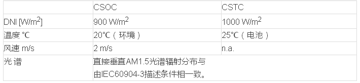 CSTC条件是在实验室控制条件下对CPV模块(以及CPV电池)进行室内测量的相关条件,而CSOC则与CPV模块进行室外测量的有关条件。因而对于CSTC而言,定义风速是没有意义的,因为风速主要是对温度稳定在25℃的PV电池会有测量影响。