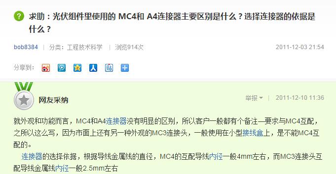 山寨企业故意混淆概念,将MC4做为一种连接器的型号。