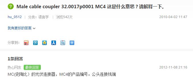 回答者具备相应的行业知识,但也没有说明MC4是什么。
