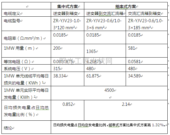 注1:按照该电站实际平均每日发电量曲线,获取交流侧电流曲线,结合线缆参数,计算出1MW单元线缆平均每日损失的电量。