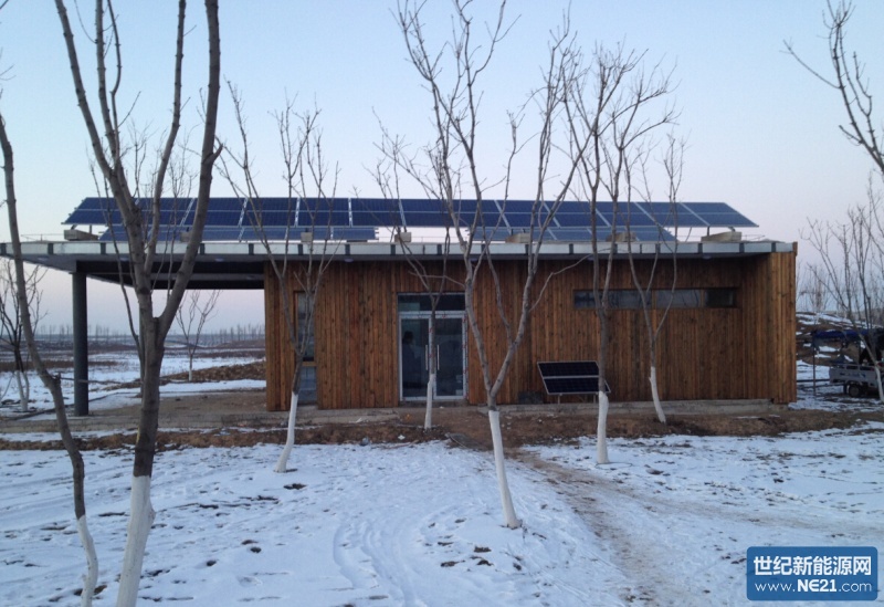 辽宁铁岭莲花湖公园是我国北方第一个国家湿地公园。相对花鸟鱼虫的喧嚣夏季,冬季的莲花湖公园,路广亭闲,清静安详。冰雪困着枯草,候鸟早已南飞,莲子在湖底等候着越年的新生。层林密布的公园内矗立着三栋木质小屋,屋顶上的深蓝色组件在冬天一片肃杀的环境中显得格外耀眼。走进了仔细看,就会发现组件下的水泥基础外面加了一层木质的包装,经过精心修饰的之后,这三套独立系统不仅看起来毫不突兀,反而为公园增添了一抹亮色。