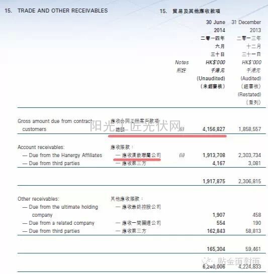 加在一起,汉能薄膜发电整个应收账款中跟关联公司有关的数额达到了60.9亿,占了所有应收账款的97.6%。关联公司,即母公司才是汉能薄膜发电最大的问题。