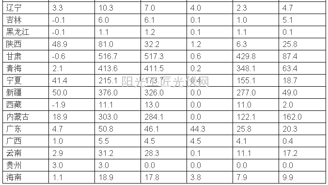 2014年光伏发电并网情况统计表(万千瓦)