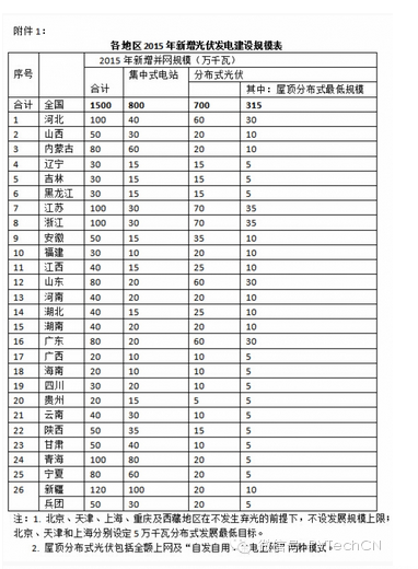 附件1:各地区2015年新增光伏发电建设规模表见图1