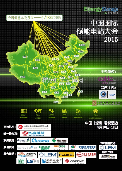 ESSC2015中国国际储能电站大会暨颁奖盛典将于2015年05月10日-12日在深圳隆重举行。作为国内最富盛名的储能电站大会,届时将邀请储能领域的专家,包括国家能源局、科技部、发改委能源研究所、工信部、国家电网、南方电网、五大发电集团新能源公司、大学院校企业代表等权威人士1000余人,围绕储能电站的相关政策与标准、市场趋势与投资建议、技术瓶颈与解决方案、项目示范与经验分享等热点话题展开。