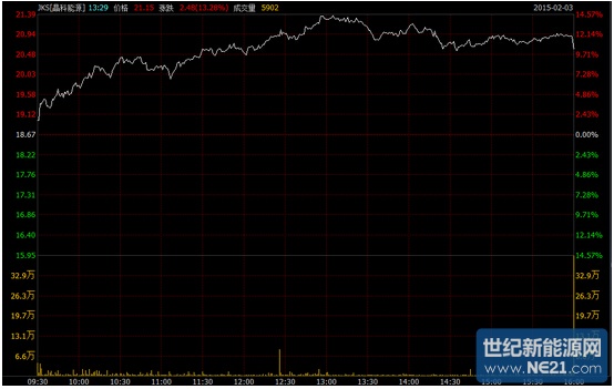 晶科能源截止作者发稿时已上涨超10%