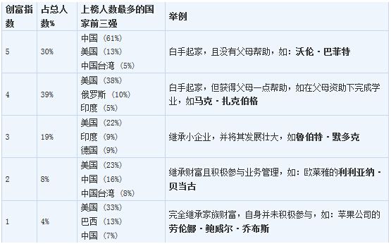 69%的上榜富豪都是白手起家,另外19%大体上也是白手起家,他们继承小企业,并将其发展壮大。