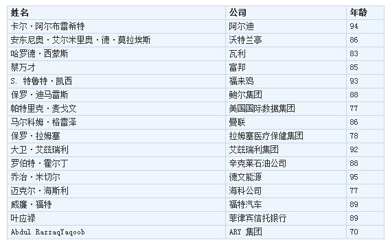 去年上榜富豪中有16位于去年去世,平均年龄85岁。