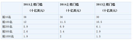 前100名上榜门槛略有增长,前200名、500名和1000名的上榜门槛有所下降。