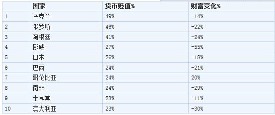 全球货币经历了高度动荡的一年,对美元平均贬值了14%。乌克兰货币格里夫尼亚暴跌了49%,紧随其后的是俄罗斯卢布。