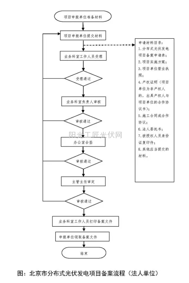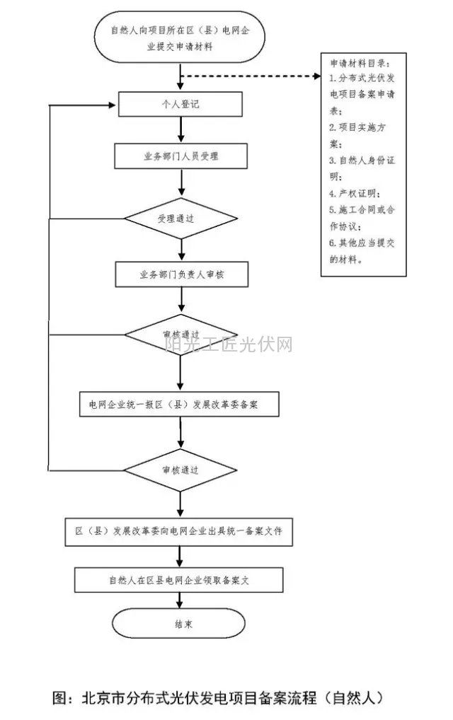 《北京市发展和改革委员会关于印发<北京市分布式光伏发电项目管理暂行办法>的通知》(京发改规[2014]4号),规定了项目的备案流程。