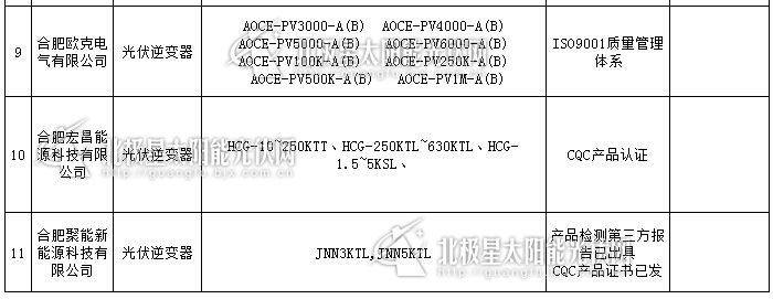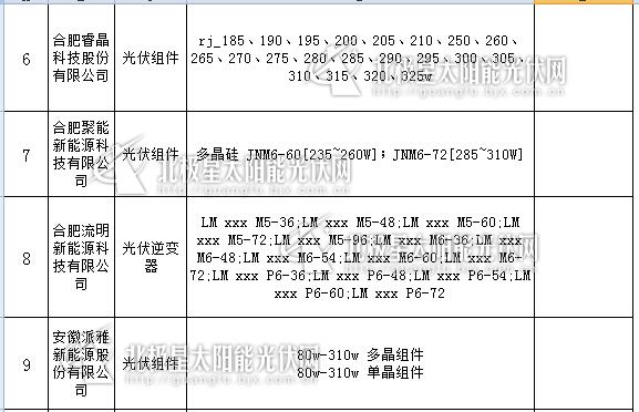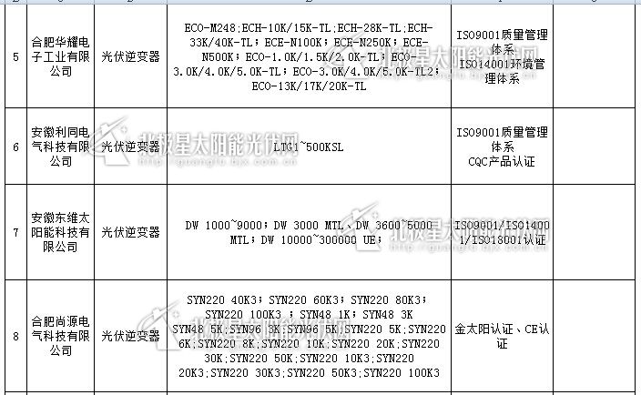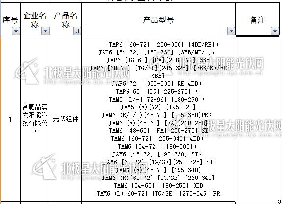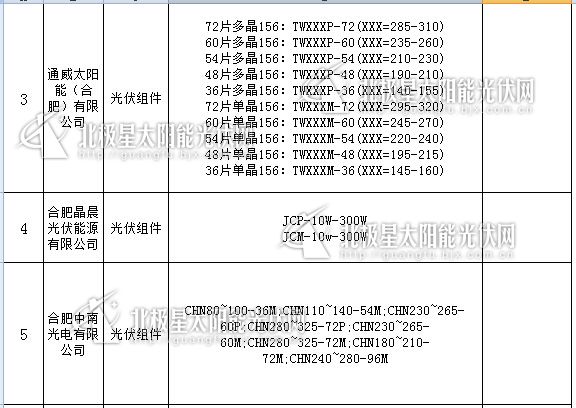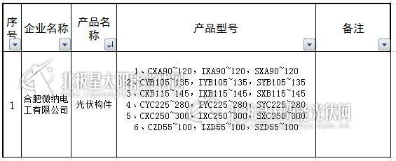 根据《合肥市人民政府办公厅关于加快光伏推广应用的通知》(合政办[2014]3号)要求,合肥市经信委会同市发改委、质监局共同开展了2015年合肥市光伏组件及逆变器产品生产目录申报审查工作。经审查,合肥晶澳太阳能科技有限公司、阳光电源股份有限公司等21家企业生产的光伏组件及逆变器产品符合我市产品生产目录条件,现予公布。