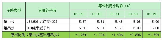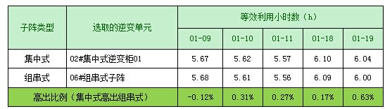 说明:以上三个子阵额定容量均为500kW;集中式与组串式所选取的子阵中,其逆变器下所带的电池组件均为同一厂家、同一型号且投产时间相同。