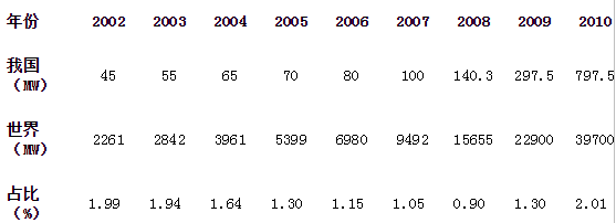 太阳能光伏发电装机方面仍然以欧洲、日本和美国为主,相比之下我国光伏装机容量占世界光伏装机容量的比重非常小(见表3)。
