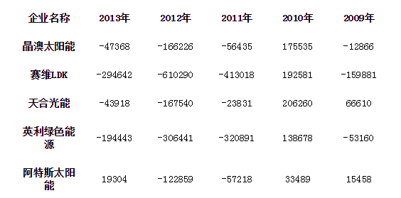 从以上分析可以看出,国内产能迅速扩张与市场需求缓慢增长致使光伏产业产能过剩,同时外需增长乏力、“双反”政策扑面袭来等,各种国内外不利因素涌现,我国光伏行业走到了十字路口。从表4可以看出,我国光伏行业主要企业净利润在2010年之后明显下降,整个光伏行业陷入困境,到2012年末亏损最为严重。从2013年的净利润指标来看,光伏行业有回暖趋势但仍不乐观。