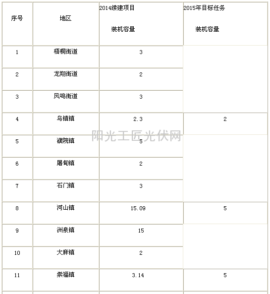 桐乡市推进光伏发电应用任务分解表(单位:MW)