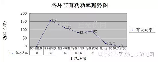 提高设备的使用效率,通过智能配电电能质量综合管理系统上线运行,现场工况得到了很大的改善。譬如设备工艺数据的管理,经工艺设备管理软件系统的排产优化分析,根据整个工艺周期的能耗统计曲线,以单晶硅直拉炉工艺周期为例,如图9所示,峰值时有功约为156kW,平均值为93kW,约为峰值功率的60%,依据“削峰填谷”的原理,协调各设备的运行工序,最终提升了30%左右的配电带载能力,使得电能的使用效率得到了极大的提高。