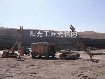 挖掘机改液压凿岩机如果采用新形式的挖掘机改装的液压凿岩机施工,施工效率会有很大的提高。一台中型挖机可在100平米的范围内完成钻孔、浇铸、修路等一系列工作,并且凿岩速度快(每分钟一米)、不受天气影响,爬坡能力强,局部爬坡可达70度。安全性高,工期短,成本低。如在2个光伏方阵中间修一条简单通道,可同时于2个方阵基础施工。以我个人的工作经验来看,不论那种设备都有它的局限性,山地地形复杂需要多种设备配合工作,才能做到优势互补,简单快捷的完成工作。