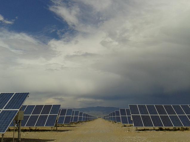 索比光伏网讯:一块块光亮的太阳能电池板矗立在荒凉的戈壁滩上,在空旷的贺兰山下显得格外耀眼,宛如戈壁滩上的塞上明珠。它不是与生俱来,而是由中利腾晖光伏科技有限公司投资建设的中利石嘴山光伏项目。该项目于2014年9月份开工建设,2014年12月份竣工并网,历时四个月。