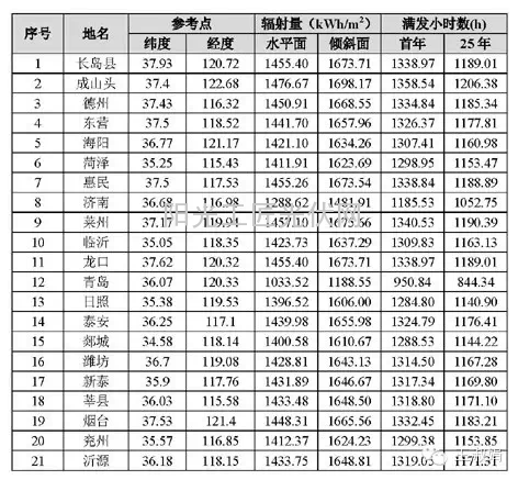山东省的太阳能资源的水平面年总辐射量在1400~1550kWh/m2之间,属于太阳能资源II类区“很丰富带”。从地域分布来看,从东向西逐渐增加。