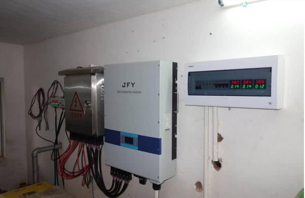 赵先生从2014年就开始建光伏电站,以前在自己家建了一个8KW的离网电站,但对并网光伏系统没有安装经验,当地供电局也没有安装先例,经朋友推荐,联系晶福源光伏产品线总监刘继茂,咨询光伏系统安装和国家光伏电站有关政策。刘工非常热心地向赵先生详细地介绍了光伏系统的工作原理,提供了光伏系统详细方案,光伏系统常见故障及解决方案。赵先生的系统共有114块200W组件,总功率是22.8KW,采用19串6并的方式。