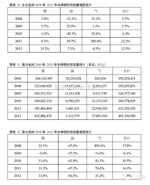 针对排放因子明显增加的华北电网、东北电网、南方电网的能源结构进行分析,结果如下。