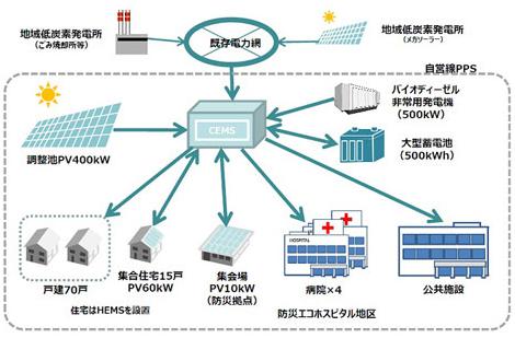 拥有光伏发电设备的“自营线特定规模电力企业(自营线PPS)”将利用CEMS,在进行优化控制的情况下供电。据称将是日本首个包含独立住宅在内,跨区域相互融通能源的智能电网。