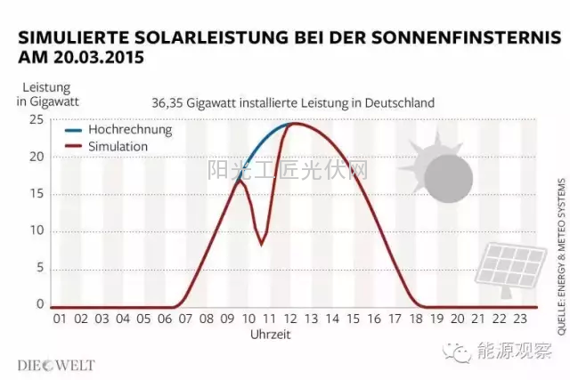 但在今年3月20日,这一支柱可能会折断。因为这天德国和整个欧洲将经历一次日食过程,大量的光伏发电设备将停止运行,电网运营商们担心这会影响安全可靠供电。