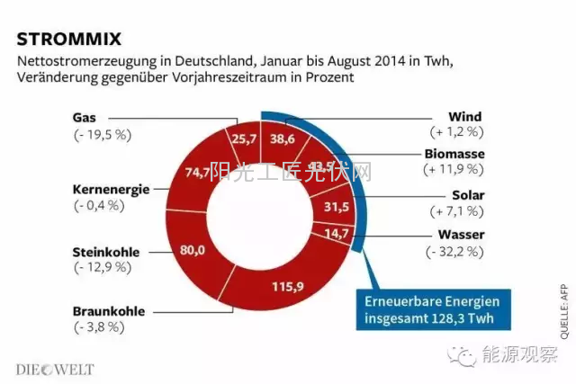 “德国目前光伏发电装机容量约3800万千瓦,在夏季阳光明媚的中午,光伏发电功率甚至可以占到最大用电负荷的一半以上”,这个位于柏林的绿色电力促进组织解释道,“特别是在德国南部,光伏已成为当地的支柱性电源”。