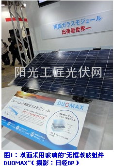 “双玻组件”在电池板的背面使用玻璃,而不是通常使用的树脂背膜(图1)。太阳能电池单元(发电元件)夹在正面的保护玻璃与背面玻璃之间。树脂(有机)材料存在长期使用会发生劣化的问题,而无机材料不会,具有延长电池板寿命的优点。而且适合盐害、积雪等环境条件恶劣的地方,以及可能发生火灾的屋顶等。这种产品博得了客户良好的口碑,销量正在增加。虽然很多制造商都投产了双玻型电池板,但天合光能的销量应该是最多的。