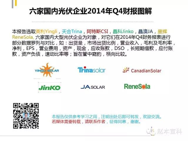 原标题:晶科、阿特斯等六家国内光伏企业2014年Q4财报图解