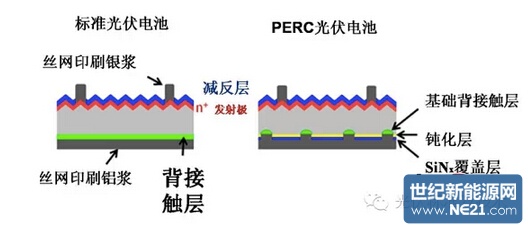 1、 PERC电池(PassivatedEmitter and Rear Cell,钝化发射极背面接触电池)