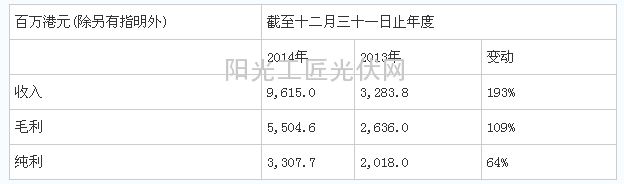 在纯利方面,2014年汉能薄膜发电共录得纯利33亿港元,比上年增长64%。