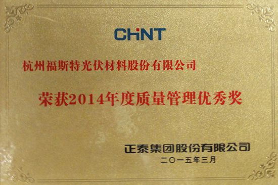 福斯特与正泰集团拥有多年的合作基础。在质量管控方面,福斯特一直以来享有客户单位的高度认可和充分肯定。顾客至上质为先,在2014年与正泰集团的合作中,福斯特供应产品送检63批,合格率、完成率均为100%,充分证明了福斯特产品品质在光伏封装材料领域的行业领先地位。