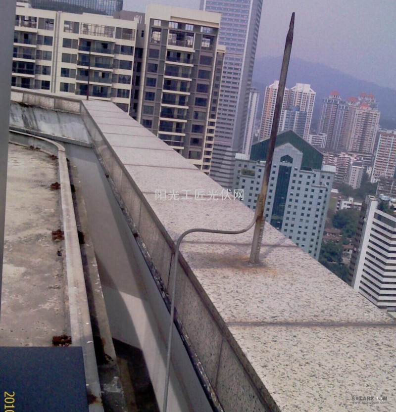 第二种情况原结构会做内部防雷,就是用主体结构的钢筋作为引下线,这种情况下我们可以把引下线接在接闪器上,可能接闪器不够,所以这个时候可以多增加几个接闪器,做在支架系统的立柱上。接闪器安装如下: