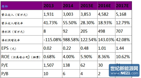 15年欲开拓700MW项目,比14年开发量增长75%,达到1.2GW。在后续资金上,除了20亿元定增,依托极强的金融创新的能力,整体有较大保障。从建设期来看,14年有与杭州工商信托合作,获得建设期融资,与国开行合作利用国开行非项目贷款进行建设,均是国内领先的。从运营期来看,公司已经启动了基于电站现金流的资产证券化(ABS),未来有可能发行中国首单光伏ABS,提高估值。