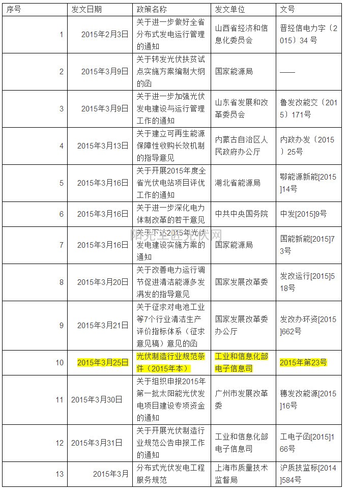同时,国家发改委下发了《关于征求对电池工业等7个行业清洁生产评价指标体系(征求意见稿)意见的函》(发改办环资[2015]662号)计划对太阳能电池生产企业的清洁生产做出更加严格的要求。