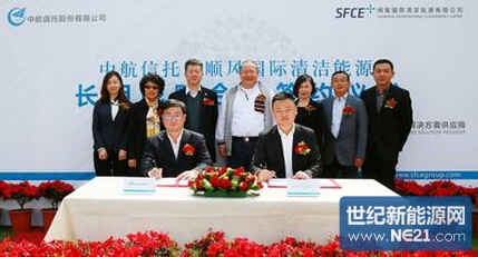 顺风国际清洁能源执行董事王宇和中航信托副总经理魏颖晖签署战略合作协议推广低碳节能的综合解决方案