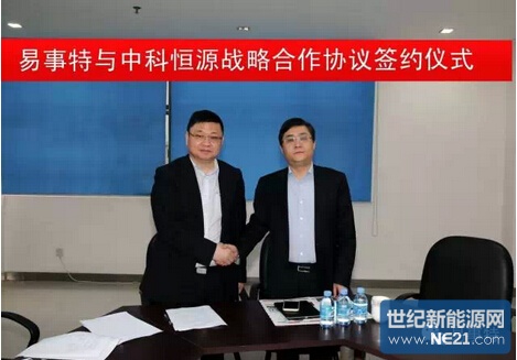 4月8日,广东易事特电源股份有限公司与中科恒源科技股份有限公司签署了双方战略合作协议,拟共同合作开发、建设光伏电站。易事特董事长何思模教授、中科恒源总裁杨南、中科恒源采购总监苏红升、易事特新能源总经理郑照红等领导出席了签约仪式。