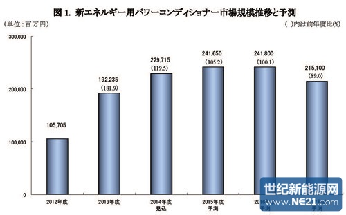 日本矢野经济研究所4月1日发表预测称,2014财年(2014年4月~2015年3月)日本新能源用光伏逆变器(PCS)市场,将比上财年增长19.5%,达到2297亿日元。