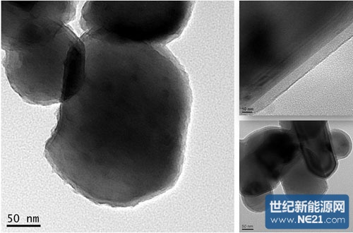 二氧化钛表面包膜状态TEM图