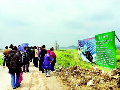 图为:募资的光伏项目二期目前还是农田,现场有不少中老年人来考察。