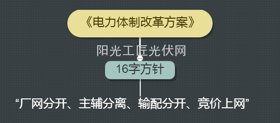 2002年,国务院下发《电力体制改革方案》(俗称电改“五号文”),提出了“厂网分开、主辅分离、输配分开、竞价上网”的16字电改方针。